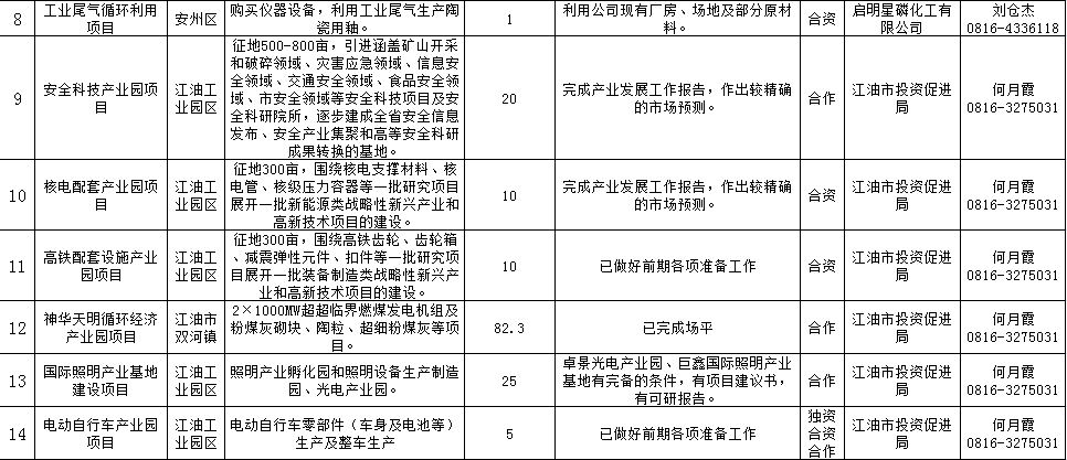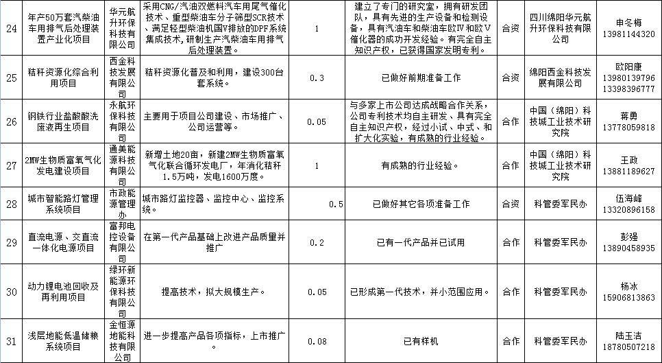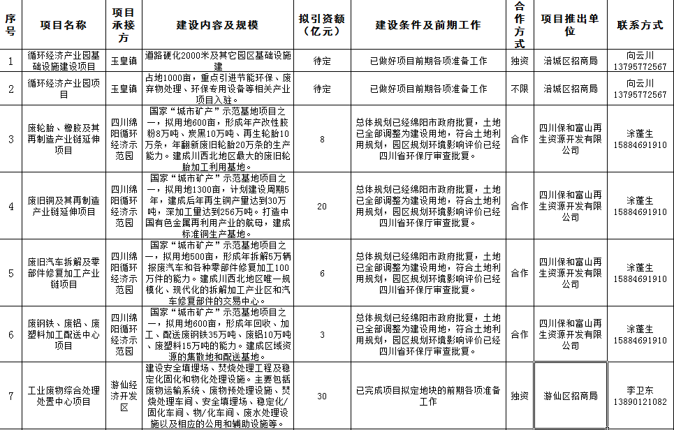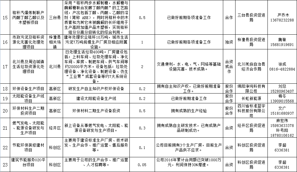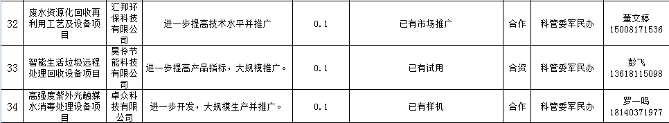 节能环保产业包装项目表