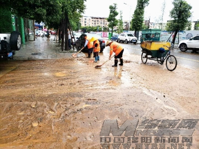 本报讯(记者 李锦辉)连日来,城区平均降雨量超过200毫米,部分主干道出现了大量积水点和淤泥铺满路面的现象,给市民出行带来极大不便,也影响了城市容貌秩序。