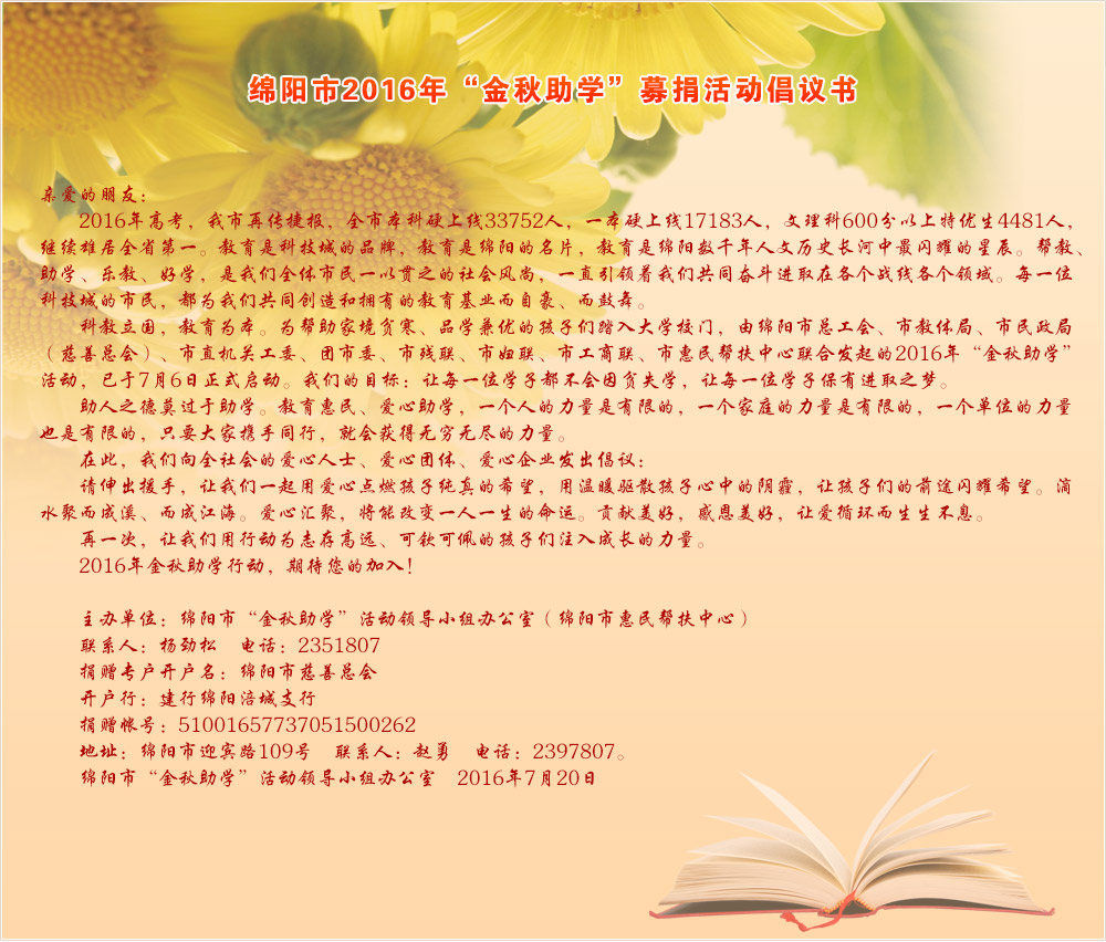 绵阳市2015年“金秋助学”活动助学金发放仪式举行