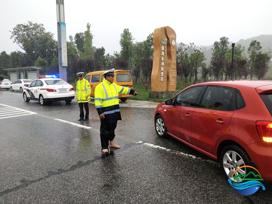 与此同时,交警直属三大队仙海中队全员上岗,在景区大门口放置交通指示牌、锥筒,并对过往车辆进行疏导,确保安全通行,此外,对辖区各村社道路存在的安全隐患进行及时排查。